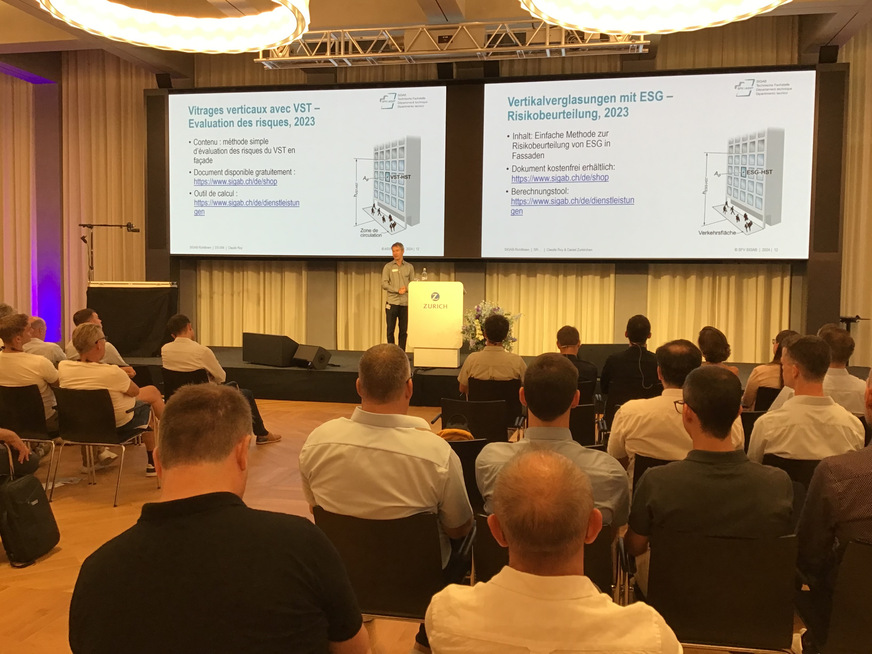 Dr Vlad Silvestru from ETH Zurich presented innovative concepts for toughened glass beams and the thermal treatment of aged glass. Among other things, his research is investigating how old glass from demolished buildings can be made fit again. Tests are being carried out to make old glass panels usable again through thermal treatment and other techniques.