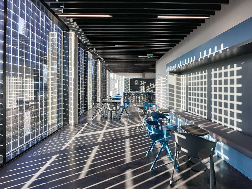 The Schüco BIPV which is on almost 700 square metres of the facade surface on the south and west sides of the building, has an output of around 70 megawatt hours per year. That is about 40 per cent of the PV output. Both transparent, triple-glazed insulating glass BIPV modules with black monocrystalline cells and black monocrystalline BIPV glass-glass modules were used as opaque, forward-mounted units in front of the main facade.