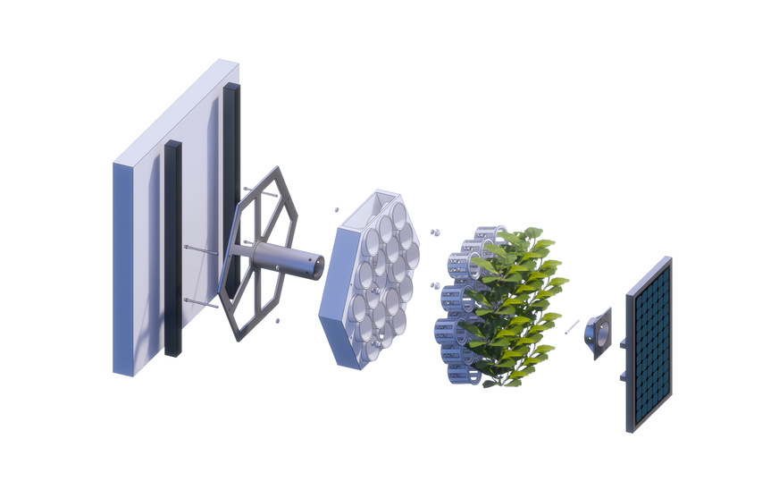 In the Mediterranean climate the efficiency of PV modules tends to decrease because of the hot temperatures. In addition, this increases the urban heat island effect in cities. The solution of the student team of Fawzi Bata, Daphne de Bruin, Sabine de Groot, Anna Maria Koniari, Doris van Uffelen, Nadine van Westeropis is a solar facade system, attached to the blind facade of apartment blocks, which works efficiently in hot climates using evaporative cooling of an integrated hydroponic plant system. The plants lower the ambient temperature which increase the efficiency of the PV panels and reduce the urban heat island effect.