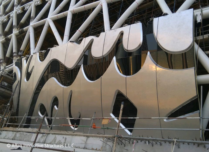 In Feng Shui, round forms symbolise the fertility of the earth, the boundlessness of the sky, and the emptiness between them the unknown, i.e. the future. The Arabic characters reproduce quotes from the ruler of Dubai and founder of the museum, Sheikh Mohammed bin Rashid Al Maktoum.