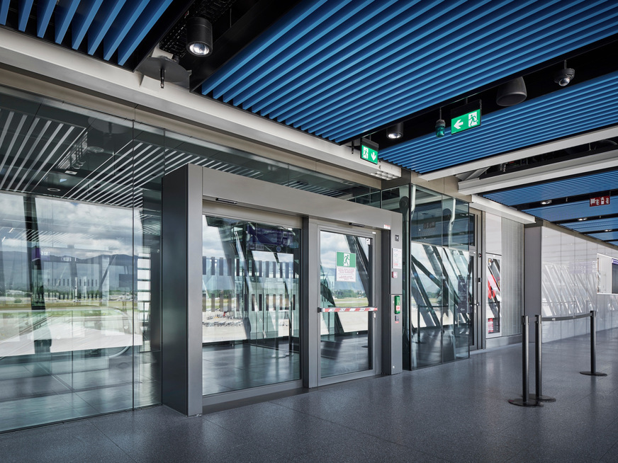 These so-called swing-out doors were specially designed and dimensioned for the Geneva airport terminal to provide optimum conditions for a quick escape in the event of a fire.