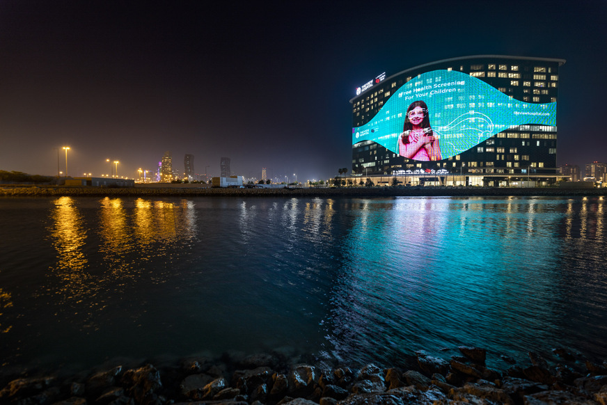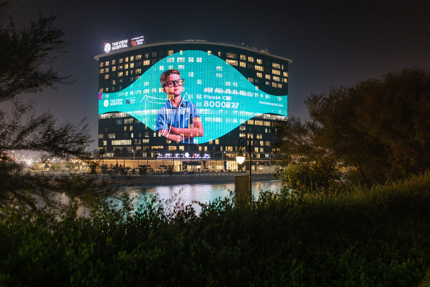 A new clinic in Doha, Qatar, shows that media facades can not only transmit adverts or infotainment, but can also be part of an architectural concept. ‘The View Hospital’ is located directly on the water - and this fantastic location is thematically picked up on with the help of integrated LED lighting on the huge glass facade.