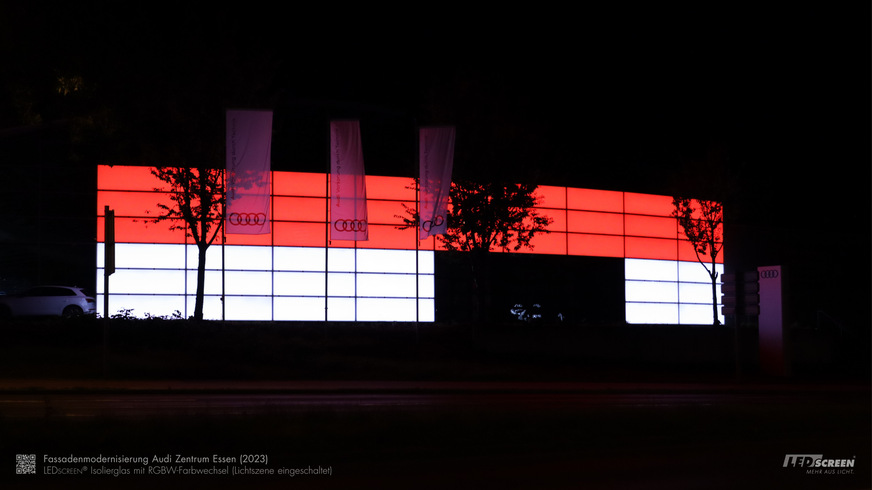 Christian Rittershaus, Centre Manager of the Audi Centre Essen, is delighted. ‘So far, we have received nothing but positive feedback from our customers. The facade lighting with the flag motifs has been particularly well received.’