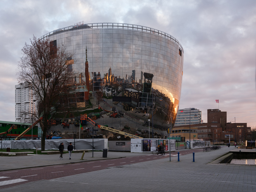 A visually striking effect results from the fact that the curved mirrors on the facade distort the mirror image, making the Rotterdam skyline appear higher than it is. Thus, the facade has already become a popular place for taking selfies long before the opening of the depot (which is planned for September 2021).