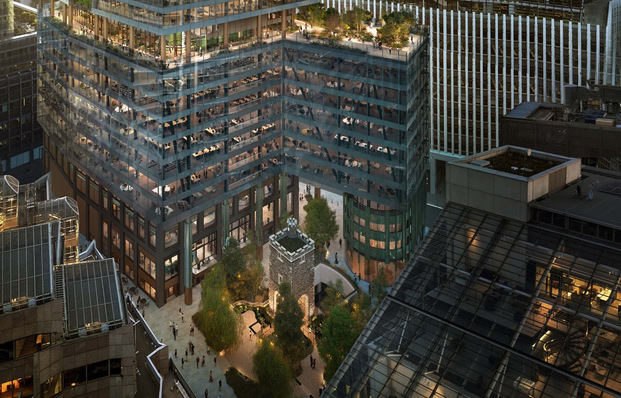 For the upper horizontal surfaces of the monument they specified a a 1.52 mm-thick SentryGlas ionoplast interlayer between two 6 mm-thick panes made from low iron-oxide glass. The panes in the bottom section consist of a 1.52 mm SentryGlas film between a 6 mm and a 4 mm-thick glass. For the main structure a 1.14 mm-thick Trosifol UltraClear polyvinyl butyral interlayer (PVB) was used between two 4 mm-thick panes. The colour was generated using a full-surface ceramic screen print in position 4.