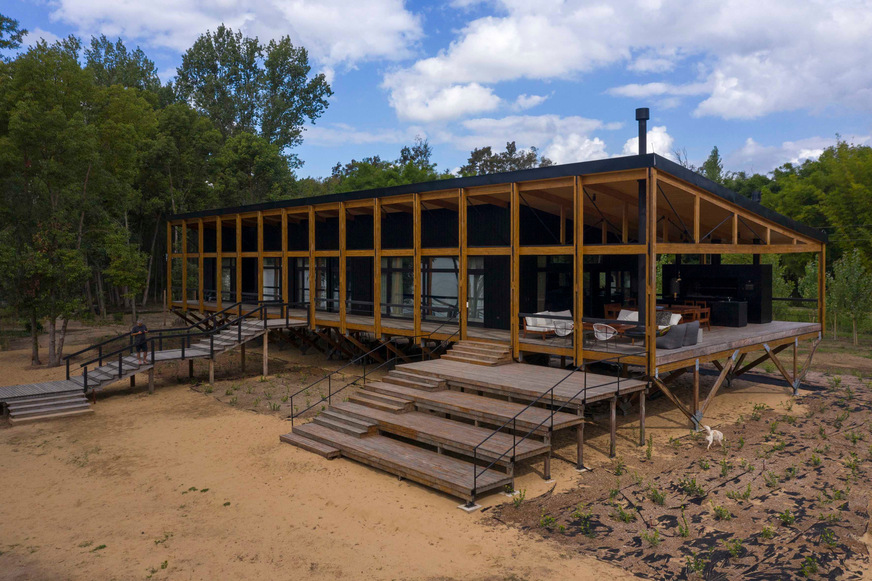 This holiday home can be reached from Buenos Aires in an hour via boat through the narrow twists and turns of the Paraná River. The property is located in the middle of a delta on a small island. However, building a house on the marshy terrain was not without its problems.