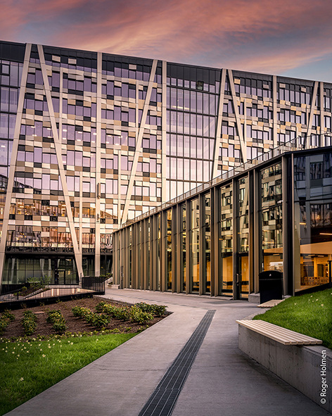 For over a year now, all new buildings in the EU have to meet the "lowest energy building" standard and should cover their energy needs with renewable energies wherever possible. But energy efficiency is only one side of the coin when it comes to sustainable building. On the other side, the discussion about grey energy as well as the circular use of the raw materials and materials used is gaining more and more momentum. And it is not only the policy sphere that is giving sustainable construction a push. In fact, the first major tenant of the Økern Portal office complex had explicitly insisted on BREEAM Excellence certification.