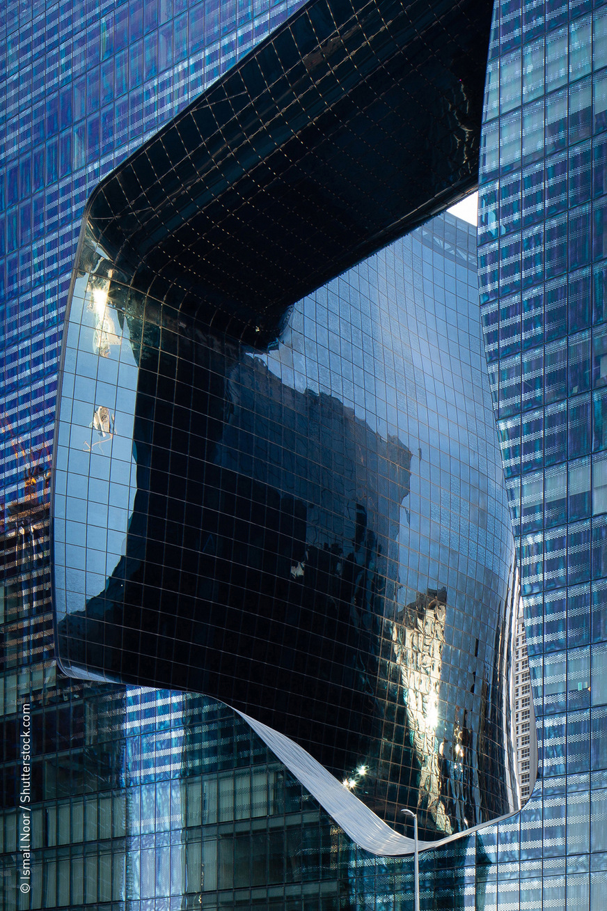 By day, the facade reflects the sky, sun, water and the futuristic architecture. At night, on the other hand, "The Void" is illuminated with LED installations. To this end, LEDs that can be individually controlled were installed in each glass panel. The transparent facades of the two rectangular reinforced concrete towers are made of double-glazed insulating glass with a UV coating and printed coloured layers of different sized dots. On the one hand, they imbue the facade with a unique vitality, on the other hand, they reflect the light and thus reduce the levels of solar input and glare. Teams from different specialist disciplines such as facade builder Alu Nasa, consultants from Koltay Facades in Dubai, Pilkington Glass, the insulating glass manufacturer Shennanyi and also the spacer supplier Edgetech have contributed their collective expertise to the realisation of the "Void". The lower end of the void is bordered by a freely formed glass roof over the multi-story atrium. At the upper end of the building, at a height of 71 metres, the towers are connected by a nearly 38 metre long, elegantly curved and earthquake-proof bridge, made of curved double-glazed insulating glass units, double curved aluminium frames and steel. This part of the building weighs 1,000 tonnes on its own. 3D modelling that is accurate down to the last millimetre of the primary and secondary steel construction, curved aluminium profiles, fastening elements and glass units constituted the basis for all suppliers involved in the project. More than 10,000 individually curved aluminium profiles were supplied from Denmark and the Netherlands, the glass units were produced in three factories in China, and ultimately the entire 3D puzzle had to be precisely pieced together on the construction site.