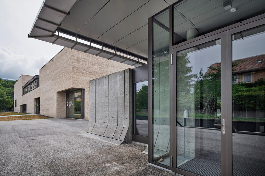 The new building is characterised by mineral-looking clinker facades. On the other hand, the transparent and fine insulating glass elements from Forster Profilsysteme AG provide a visually appealing contrast inside and out.