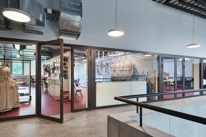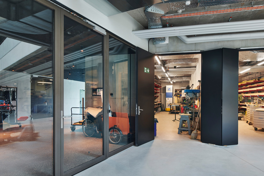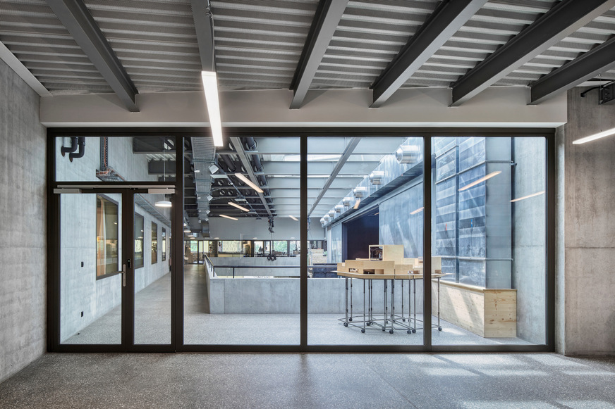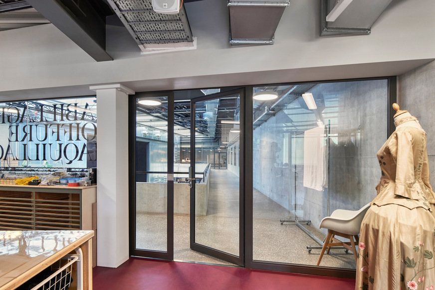 To achieve perfect separation into fire compartments, the architects and safety officers opted for fire doors and fixed glazing with forster fuego light El30. These fully glazed, column-free elements provide a safe connection between the workshops with a high fire risk and the various rooms and the foyer of the new building. In addition to fire protection, the forster presto E30 system also provides safety on the escape routes.