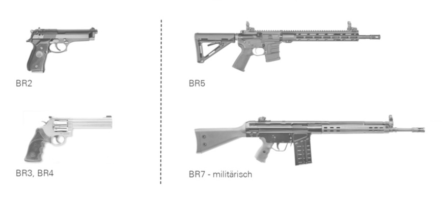 DIN EN 1063 defines seven protection classes for the bullet resistance of glass (BR1 to BR7, Table 1). In the highest class, a pane actually resists attacks with ammunition containing a hardened steel core - so an attack would have to be very severe and military to be "successful".