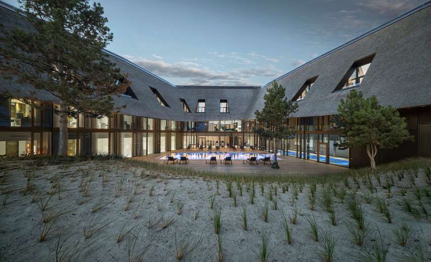 The existing building with its overhanging thatched roof serves as a model for the other buildings in the ensemble. Taken together, Lanserhof Sylt has the largest thatched roof in Europe at 7100 m2.