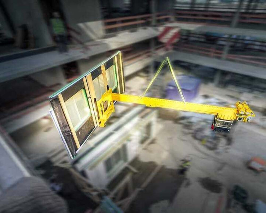 Flexible climbing systems are often used in the construction of high-rise buildings, which move upwards with the building as the construction process progresses. This method is very efficient, but poses challenges when facade elements such as glass panes have to be installed during the ongoing construction process.