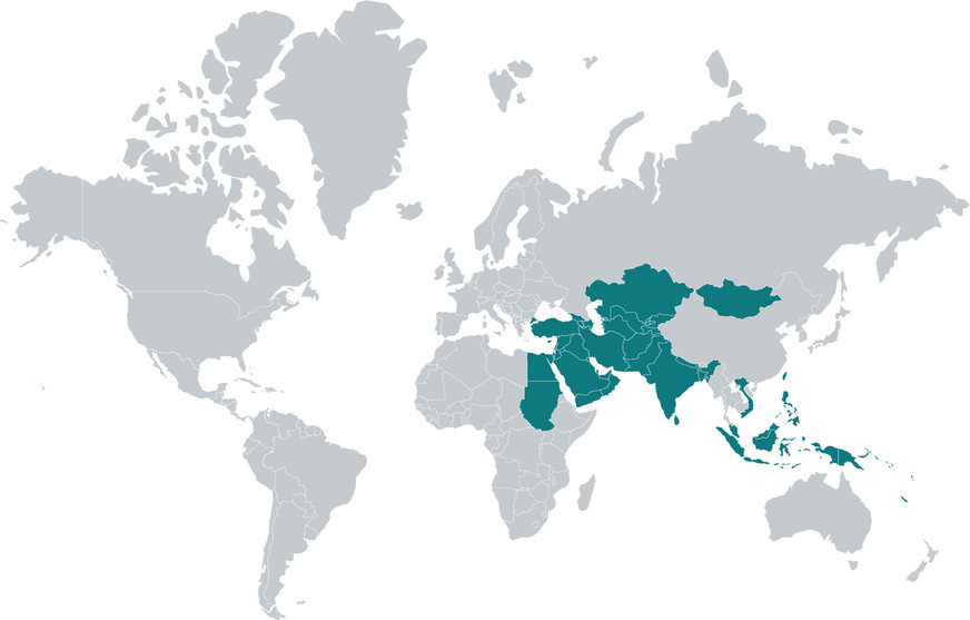 Afghanistan, Bangladesh, India, Nepal, Pakistan, Sri Lanka