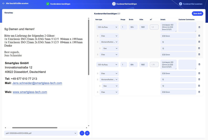 In the flat glass industry, thousands of orders are manually copied from emails, checked and transferred to the ERP system every day - a time-consuming, error-prone process and exhausting hard work for employees. Traditional EDI systems are frequently limited in practice, either by the substantial cost of integration or by partners’ resistance to process changes.