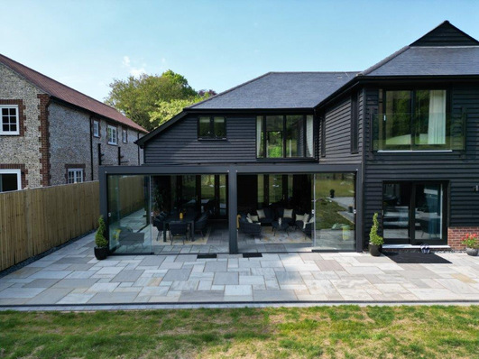 [More attractive outdoor seating with modern awning system]