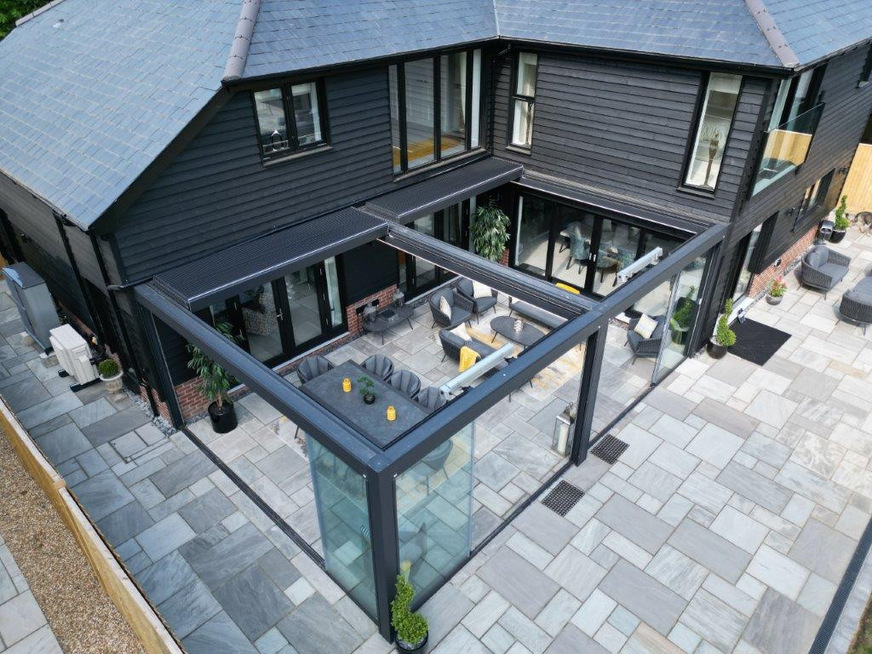 To further enhance comfort and usability, the project incorporated bespoke features, including glass sliding panels for wind protection, LED lighting to create the perfect evening atmosphere, and vertical blinds to ensure privacy when needed. These additions not only improve the functionality of the space but also reflect the homeowners' desire for a customised, premium experience.
