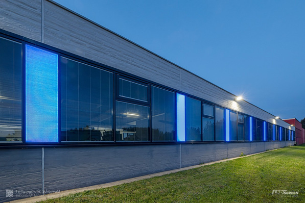 After refurbishment, the production hall of kama Maschinenbau GmbH in Schönwald now shines in new splendour. During the energy optimisation, great importance was also attached to the visual appearance of the facade, whereby insulating blinds and luminous products from Kuzman Invision GmbH, a member of the Flachglas MarkenKreis, were installed.