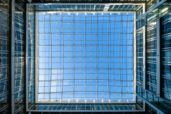 The imposing Newton office building of the TÜV Süd Group in Munich, Germany offers plenty of room for creativity. A visual highlight of the building is the 950-square metre glass roof from Lamilux, which covers the entire entrance hall and provides plenty of daylight in the interior. Here are details of the implementation.