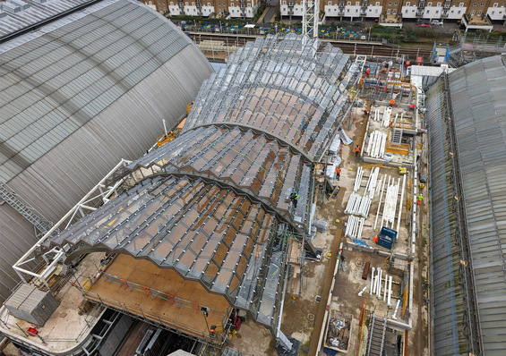 The Olympia glass canopy in Kensington has been completed. Eckersley O’Callaghan engineered the steel and glass canopy that sits atop the public realm space within the Olympia redevelopment.