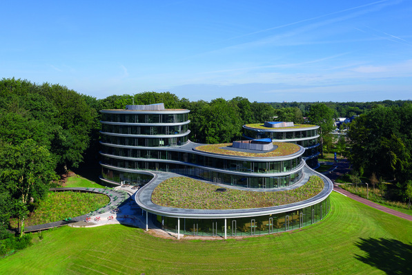 The new offices of the Triodos Bank in the Netherlands set standards for circular construction as a completely demountable, energy-neutral building with a wooden structure and a glass facade.