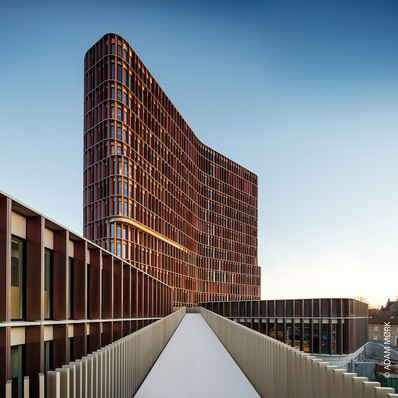 The entire headquarters of the insurance company Helvetia in Basel, Switzerland is being reorganised. At the heart is a new office tower, which is an identical copy of an existing building from the 1950s. Special facade profiles based on existing Schüco models were used for the facades of both tower blocks, as well as for the connecting auditorium. Here are the details.